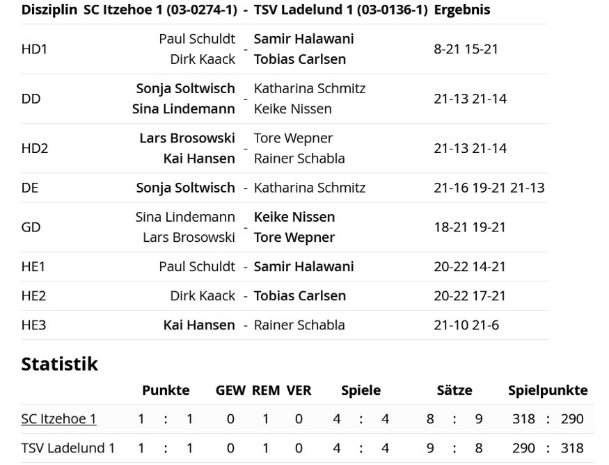 durch Malte begannen wir auf Wunsch des Gegners mit dem zweiten Herrendoppel