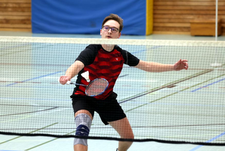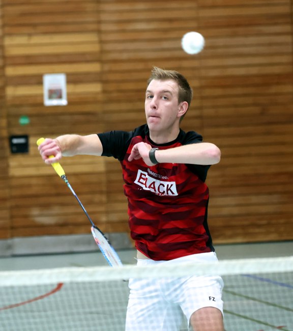 Im ersten Herreneinzel zeigte Paul heute eine starke Leistung. Obwohl sein laufstarker Gegner viele spektakuläre Bälle zurückbrachte behielt Paul stets die Kontrolle im Spiel, gewann den ersten Satz mit 21:15 und den Folgesatz sogar noch etwas deutlicher mit 21:13.