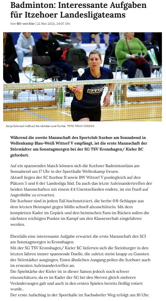 | 23.11.2025: SG TSV Kronshagen / Kieler BC - Sport-Club Itzehoe |