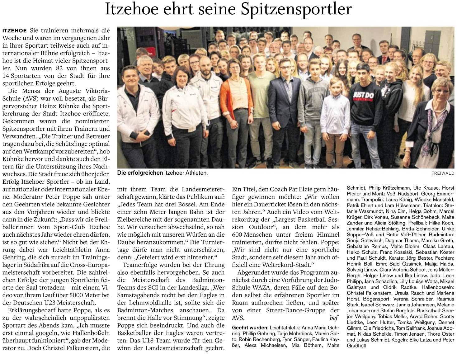 in der Norddeutschen Rundschau über die städtische Sportlerehrung
