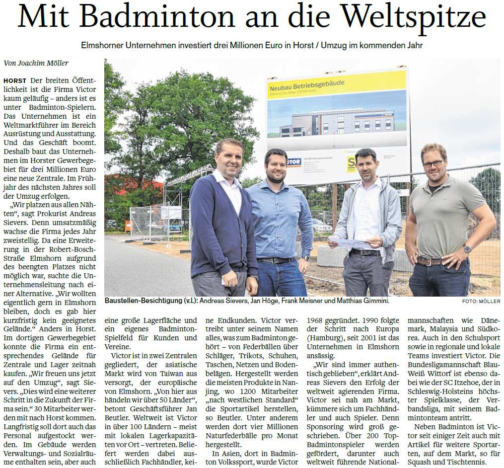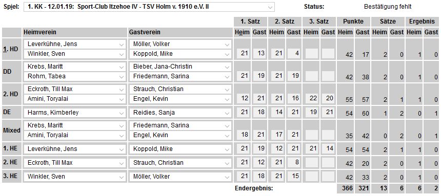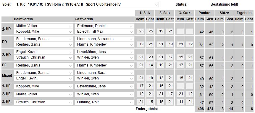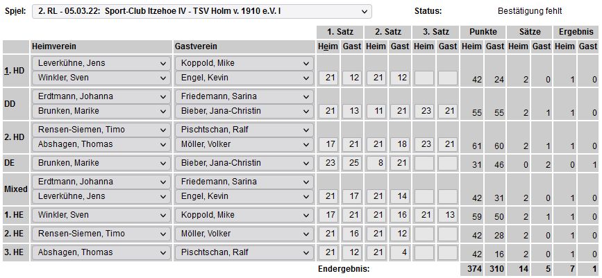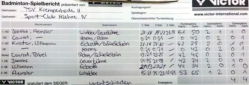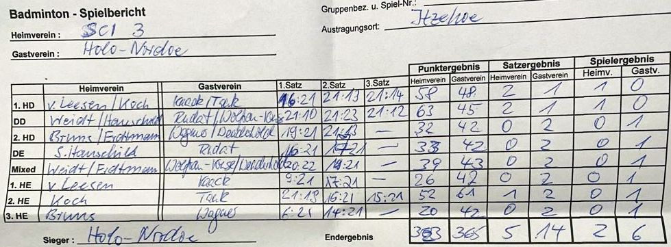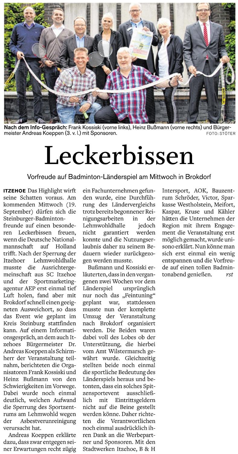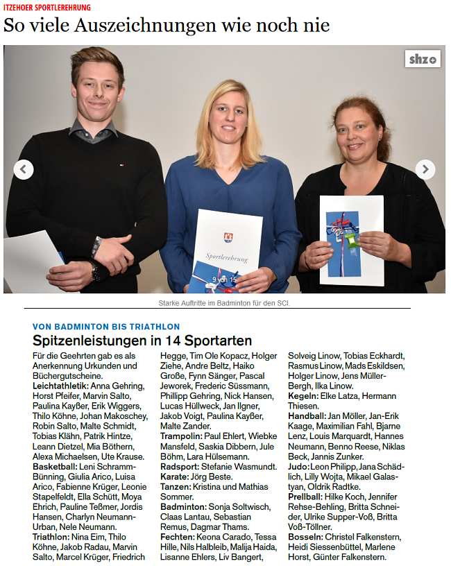 | Bericht im sh:z über den Auswärtssieg unserer ersten Mannschaft bei der SG TSV Kronshagen / Kieler BC und der Heimschlappe unserer zweiten Mannschaft gegen das Landesligateam von BW Wittorf. |