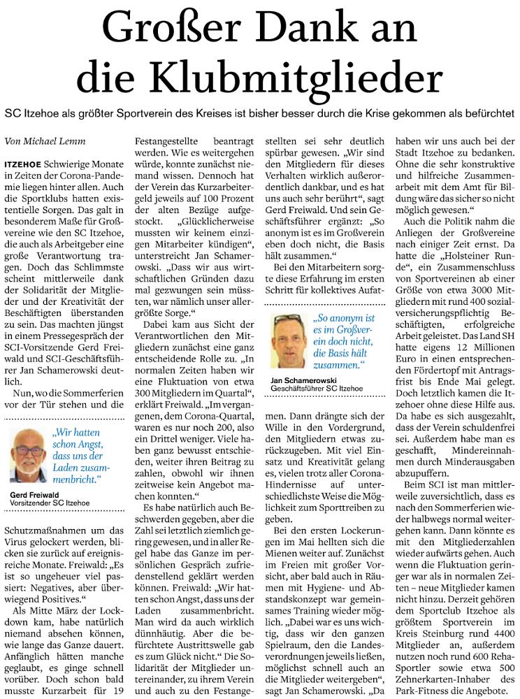 | Abschlussbericht im sh:z von Malte Blohm über das große Saisonfinale beim Sport-Club Itzehoe. |