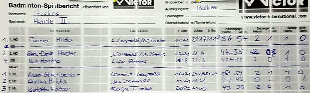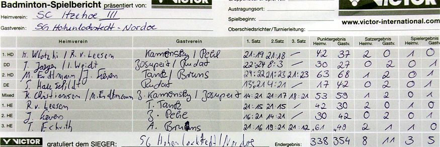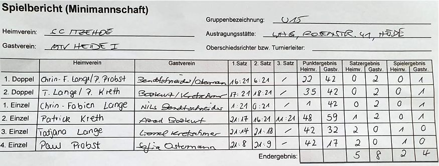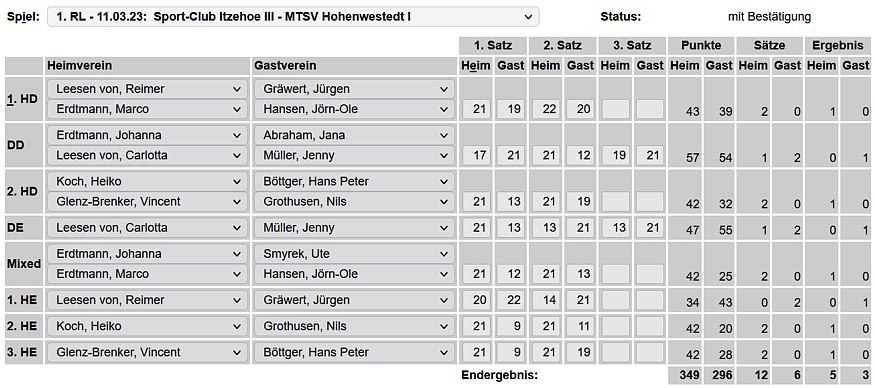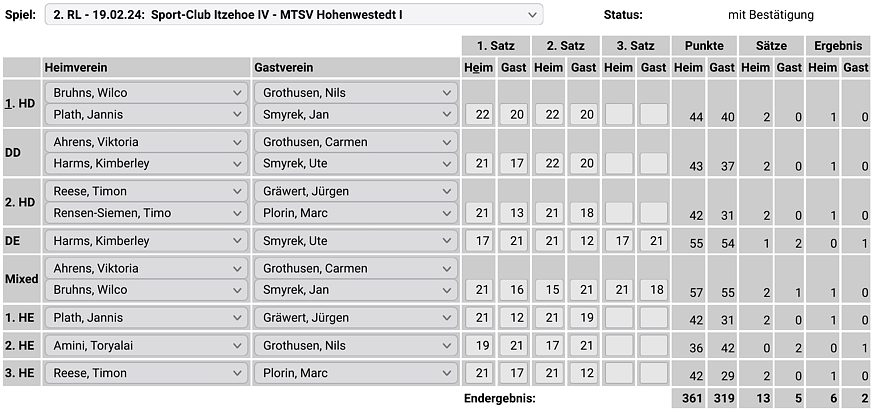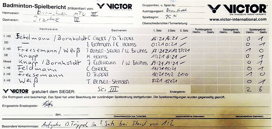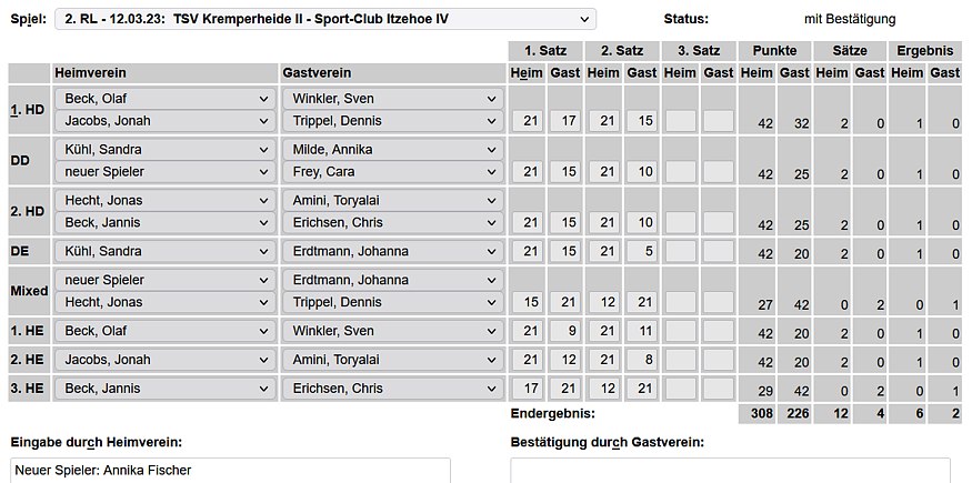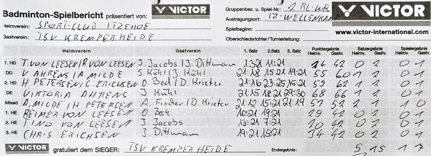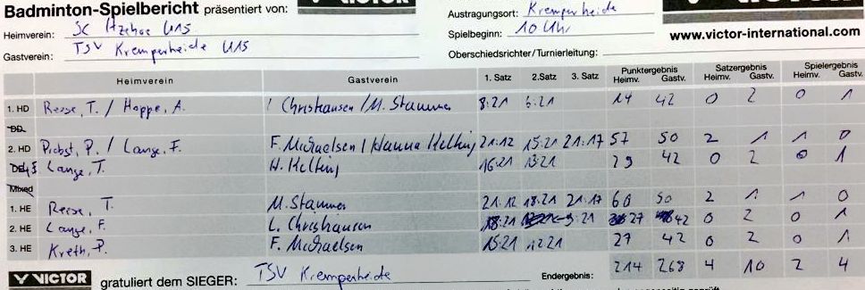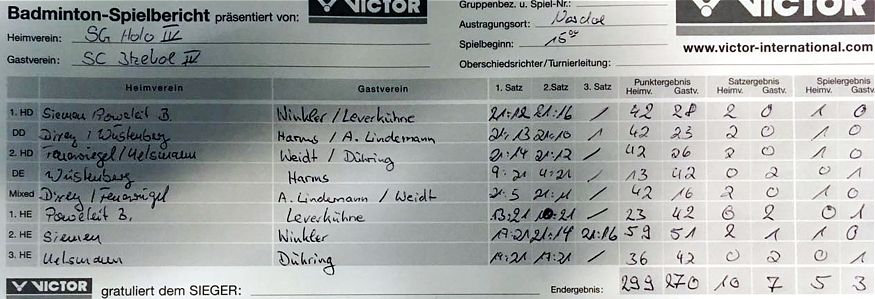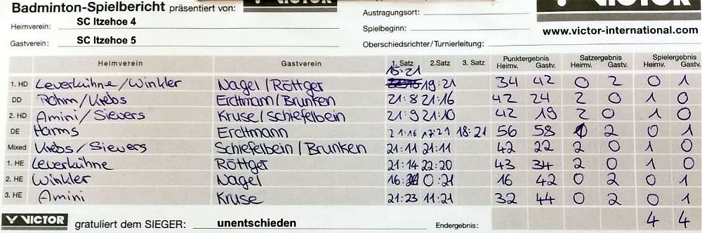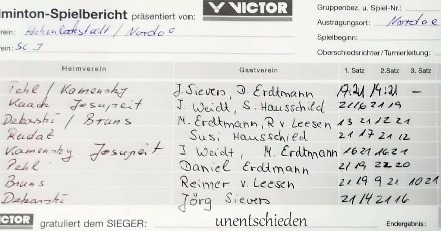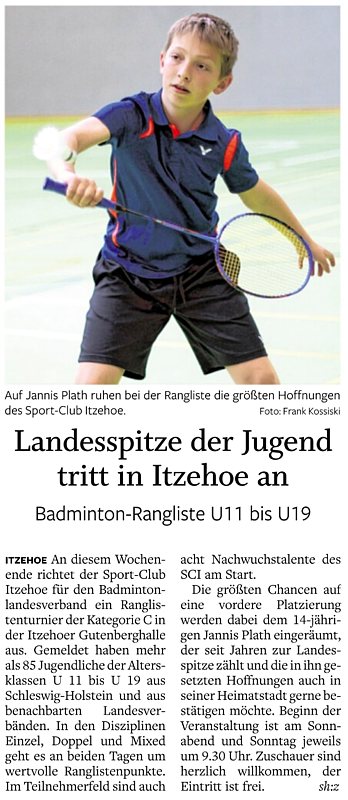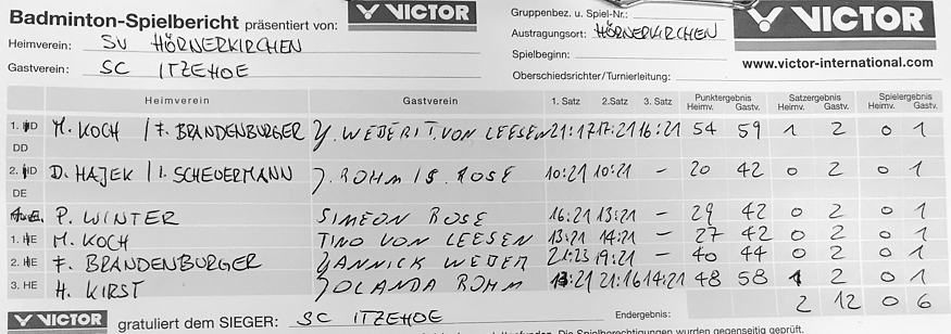 in der Landesliga Süd gegen die Möllner Sportvereinigung, Ole Beyer und Paul Schuldt gewannen im Herrendoppel die Landesrangliste in Rendsburg, Leonie Soltwisch und Yannik Weber nahmen an den Norddeutschen Meisterschaften in Neustadt am Rübenberge teil. |