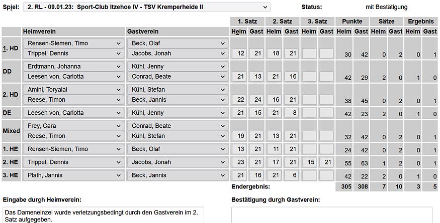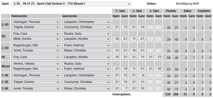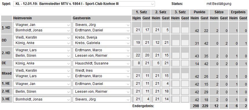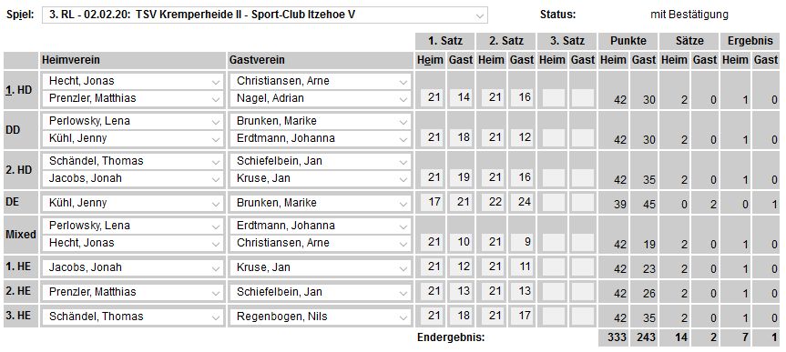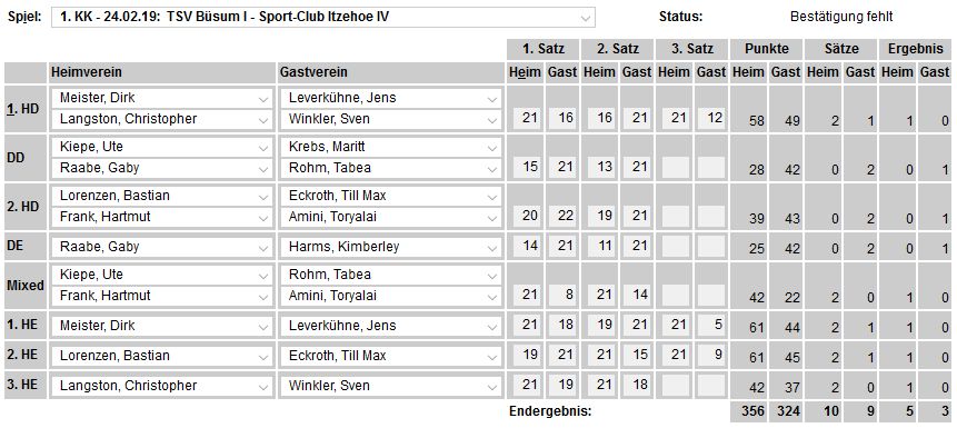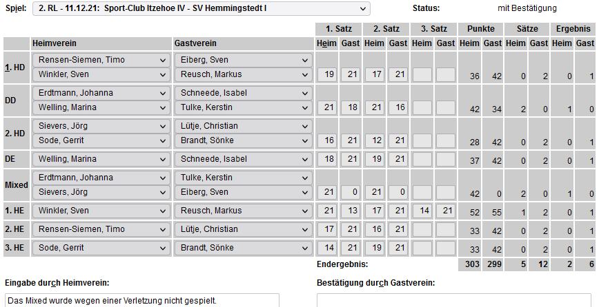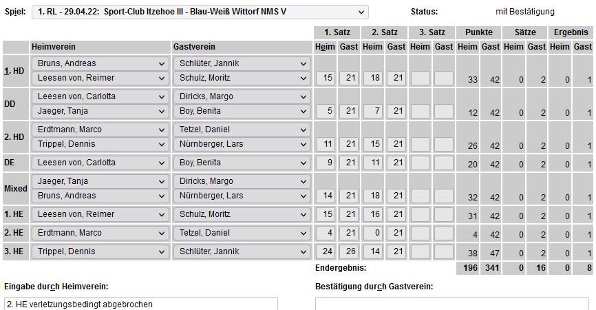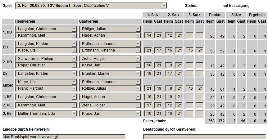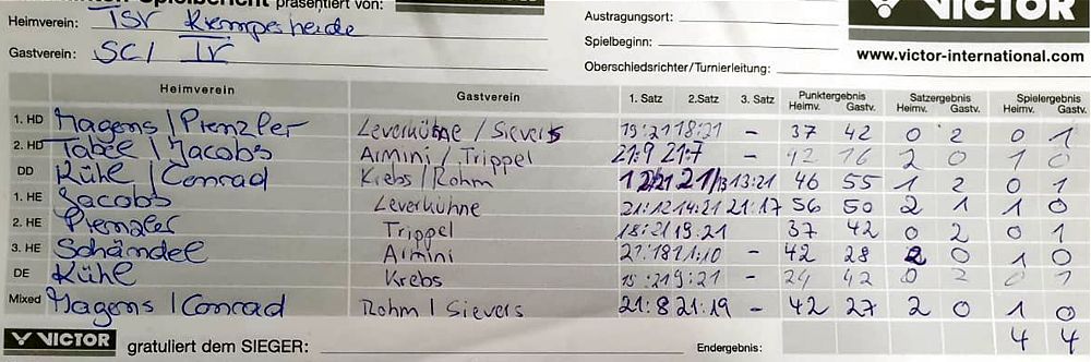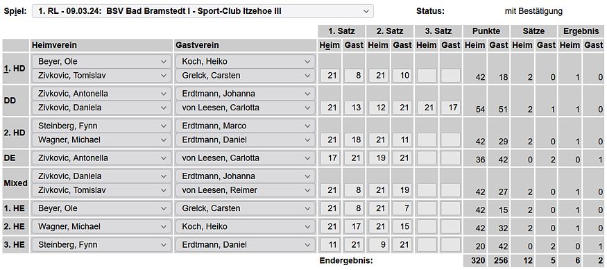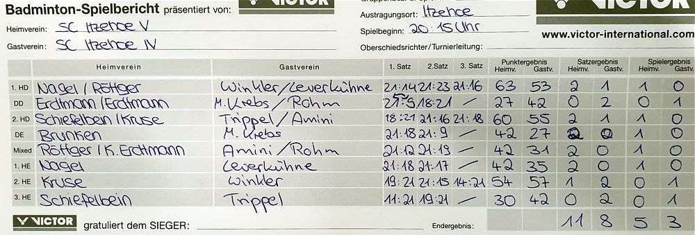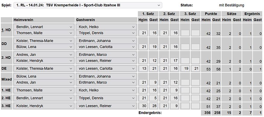in der Landesliga Süd gegen die Möllner Sportvereinigung, Ole Beyer und Paul Schuldt gewannen im Herrendoppel die Landesrangliste in Rendsburg, Leonie Soltwisch und Yannik Weber nahmen an den Norddeutschen Meisterschaften in Neustadt am Rübenberge teil. |