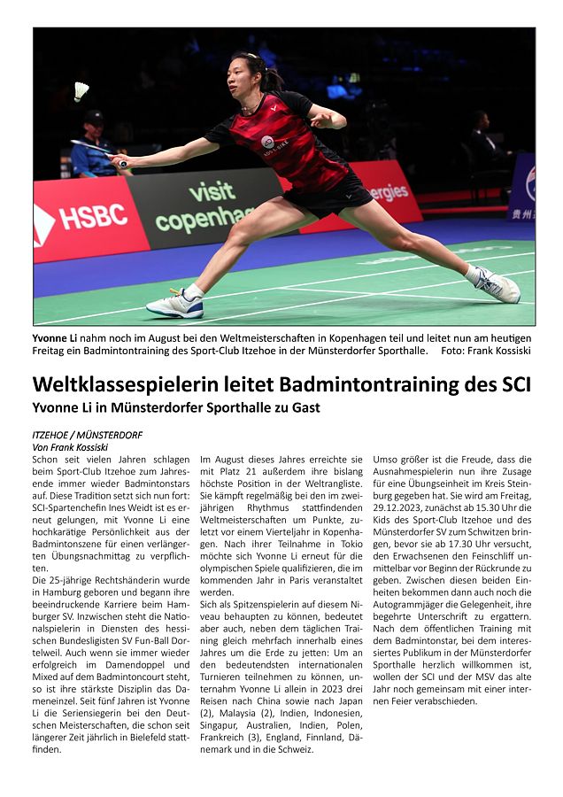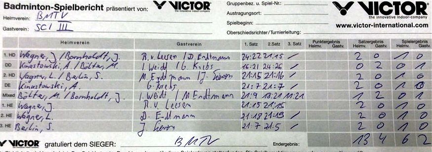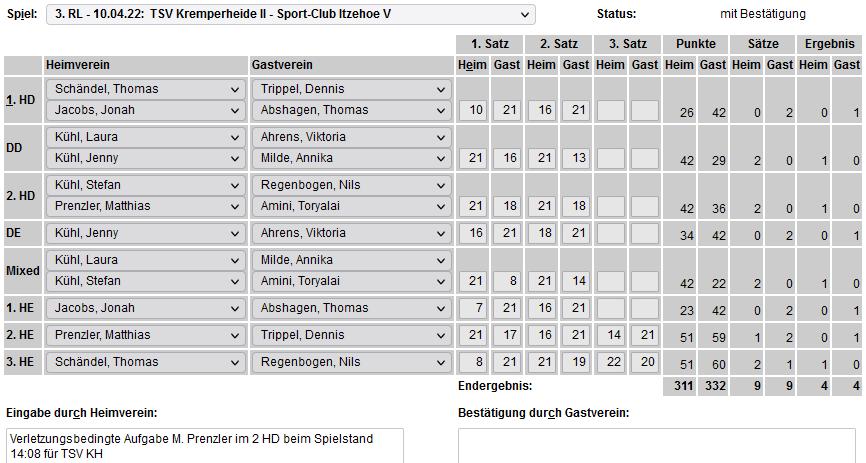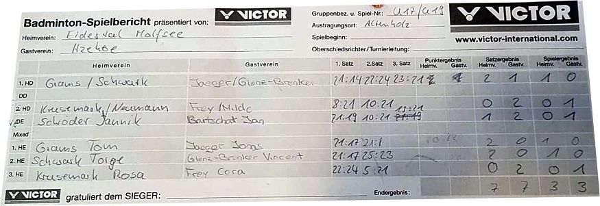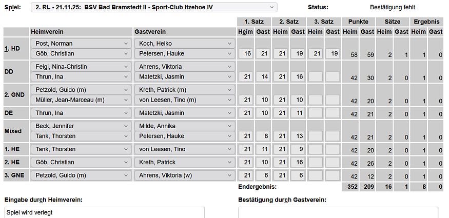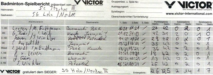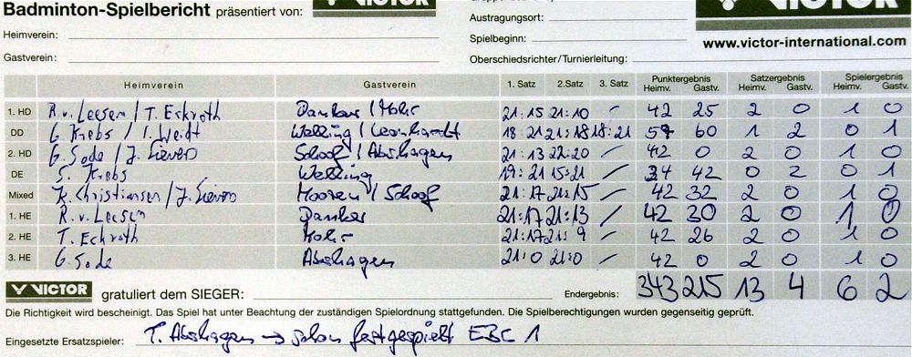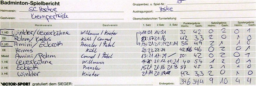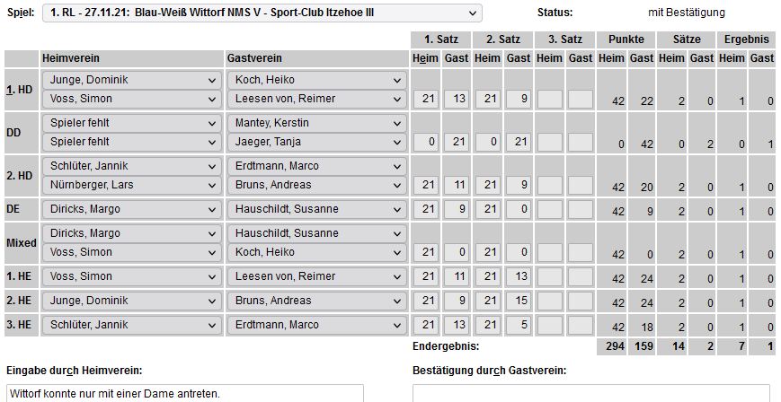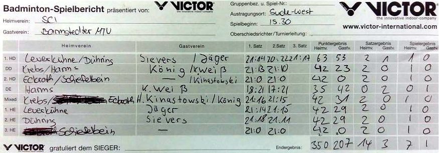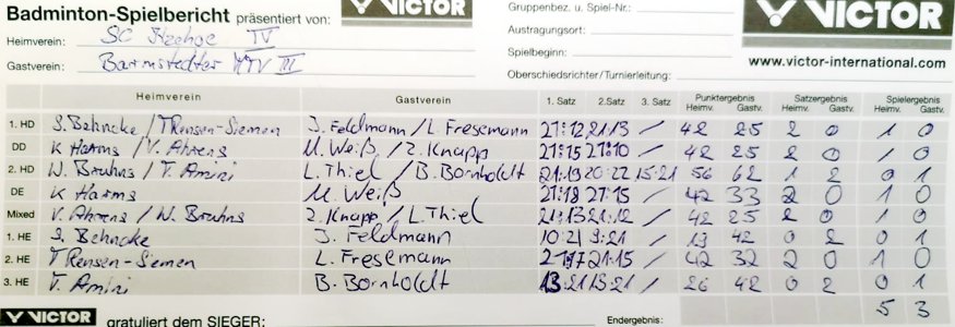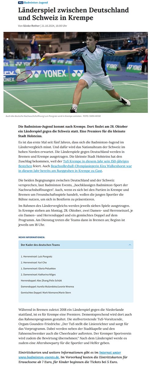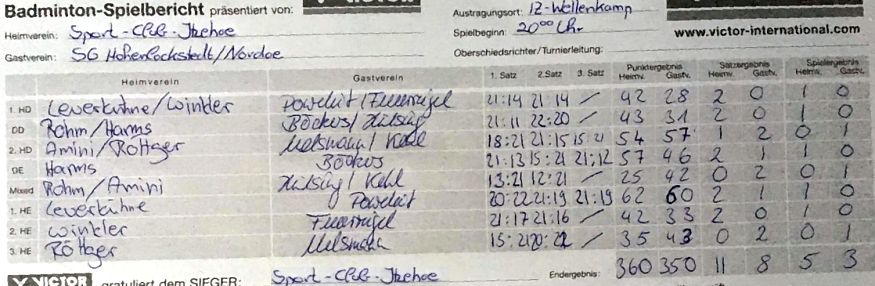 mit besonderer Erwähnung der Badminton-Heimspiele der ersten Mannschaft. |