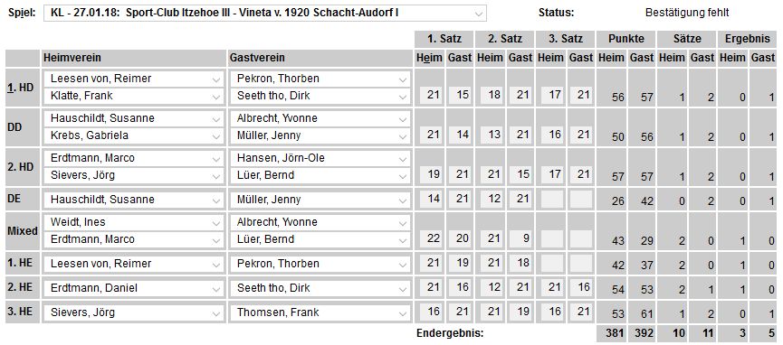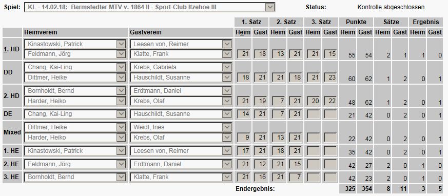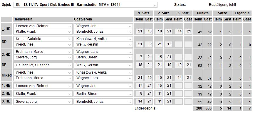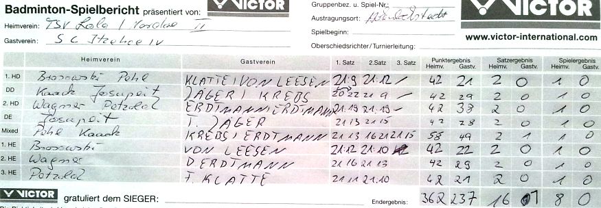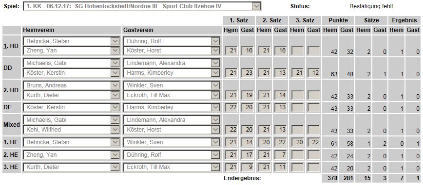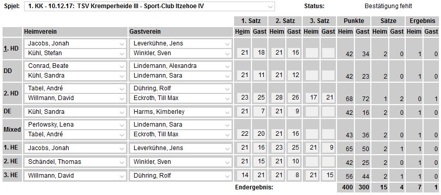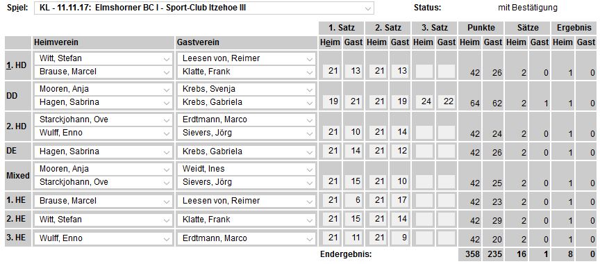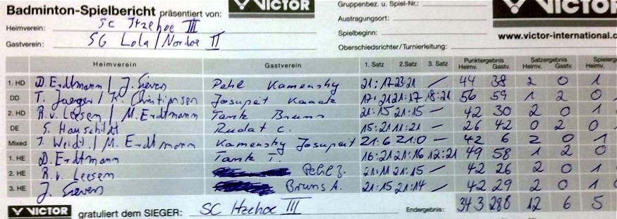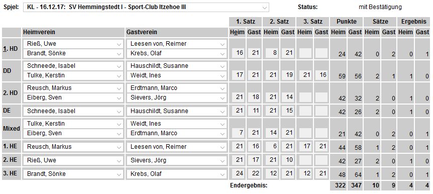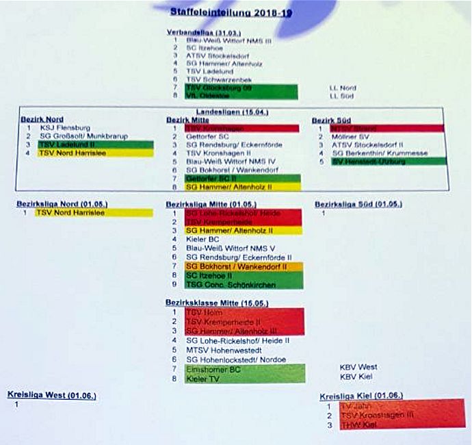 der SCI-Badminton-Abteilungsversammlung vom 17.05.2017, endgültige Einteilung der Spielklassen auf SHBV-Landesebene. |
