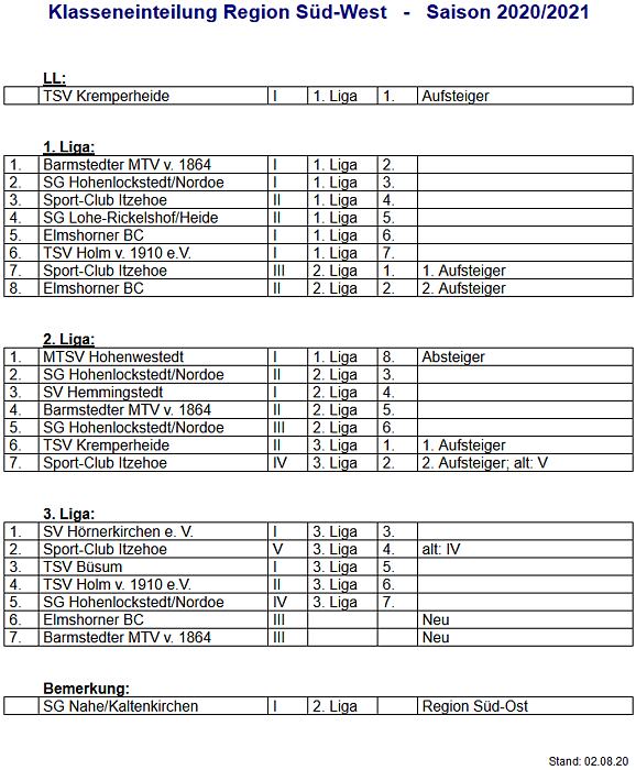 | Vorläufige Staffeleinteilung im SHBV für die Saison 2025/2026. |