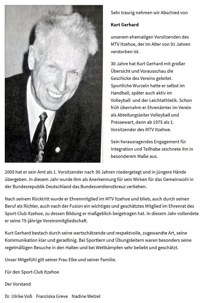 | Wir trauern um unseren früheren Vorsitzenden Kurt Gerhard, dem wir als MTV- und SCI-Badmintonsparte viel zu verdanken haben. Er hat sich unserer Abteilung immer verbunden gefühlt. |