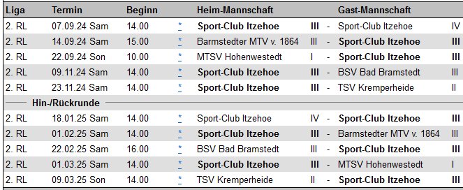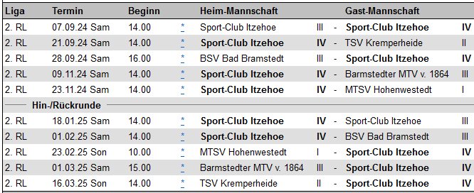 | Aktualisierte Spielpläne unserer ersten Mannschaft, zweiten Mannschaft, dritten Mannschaft und vierten Mannschaft für die neue Saison 2025/2026. |