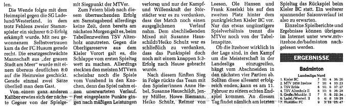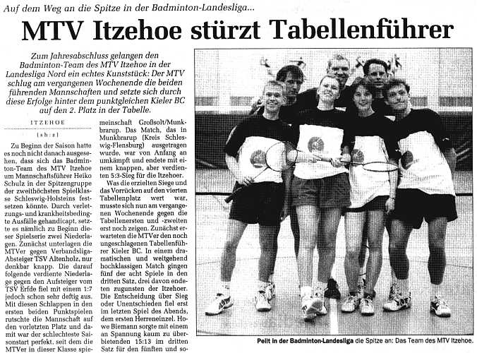Die 1. Mannschaft in der Norddeutschen Rundschau vom 21.12.2000