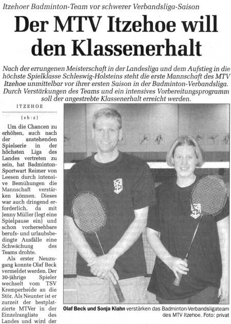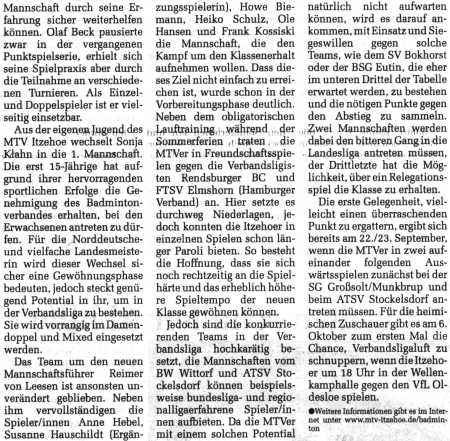 Die 1. Mannschaft in der Norddeutschen Rundschau vom 19.09.2001