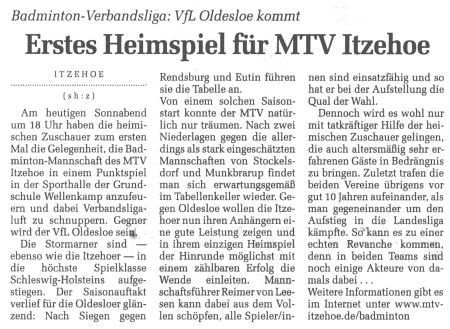 Die 1. Mannschaft in der Norddeutschen Rundschau vom 06.10.2001
