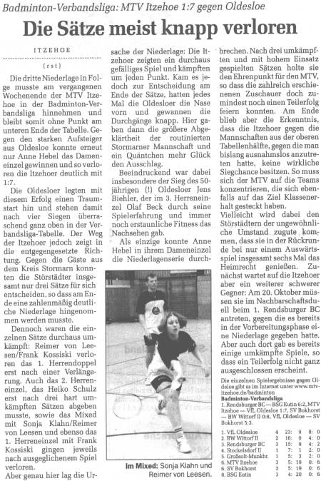 Die 1. Mannschaft in der Norddeutschen Rundschau vom 11.10.2001
