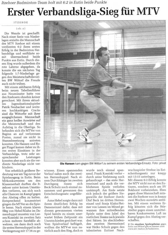 Die 1. Mannschaft in der Norddeutschen Rundschau vom 31.10.2001