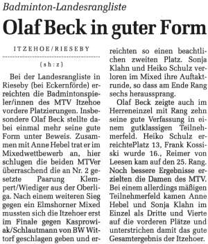Die 1. Mannschaft in der Norddeutschen Rundschau vom 23.01.2002