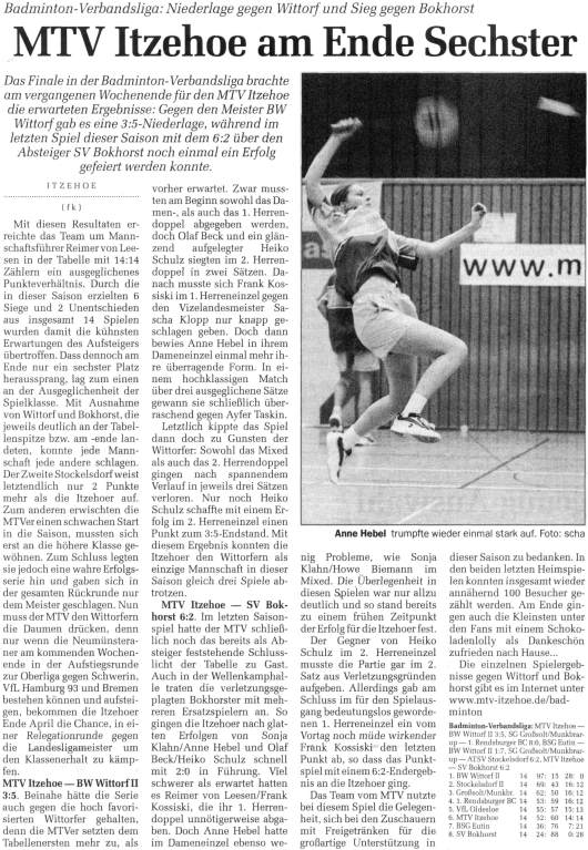 Die 1. Mannschaft in der Norddeutschen Rundschau vom 28.02.2002