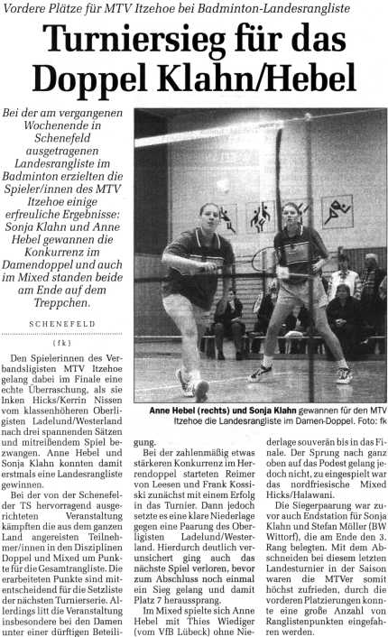 Die 1. Mannschaft in der Norddeutschen Rundschau vom 10.04.2002