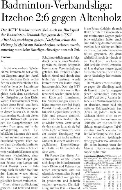 Die 1. Mannschaft in der Norddeutschen Rundschau vom 07.11.2002