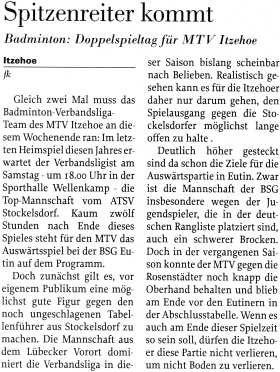 Die 1. Mannschaft in der Norddeutschen Rundschau vom 15.11.2002