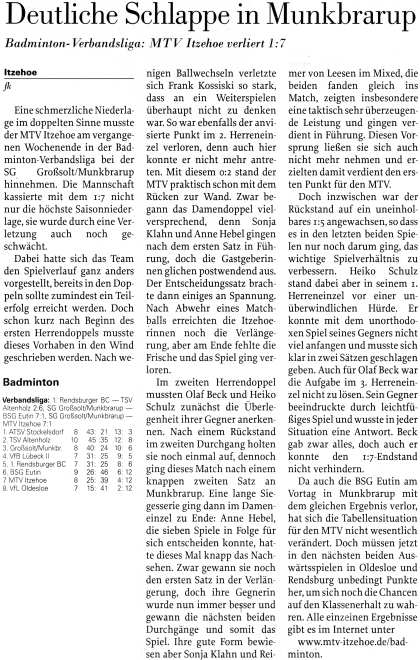 Die 1. Mannschaft in der Norddeutschen Rundschau vom 12.12.2002