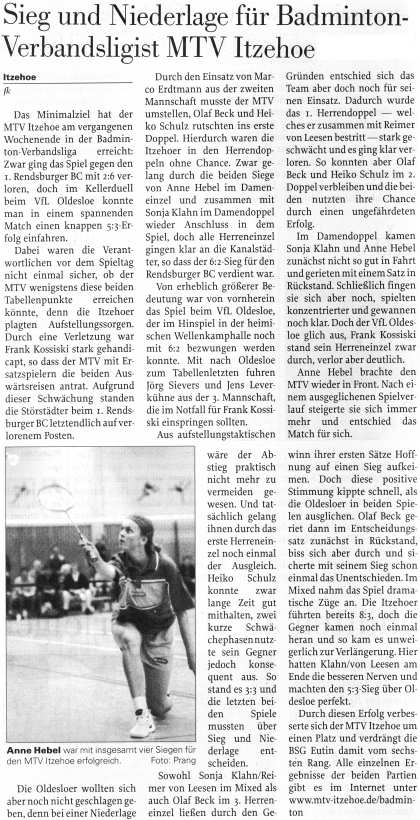 Die 1. Mannschaft in der Norddeutschen Rundschau vom 19.12.2002