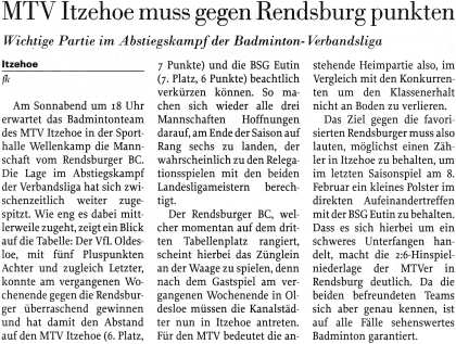 Die 1. Mannschaft in der Norddeutschen Rundschau vom 24.01.2003