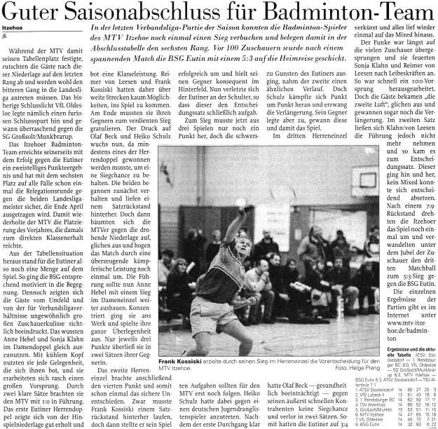 Die 1. Mannschaft in der Norddeutschen Rundschau vom 13.02.2003