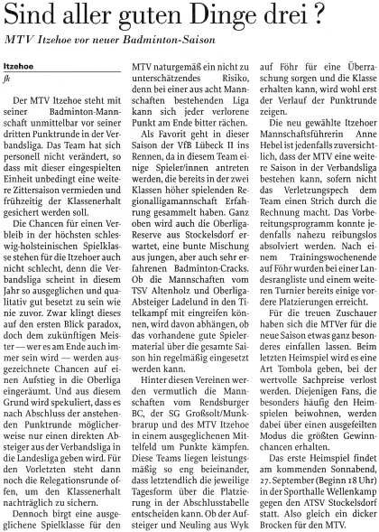 Die 1. Mannschaft in der Norddeutschen Rundschau vom 22.09.2003