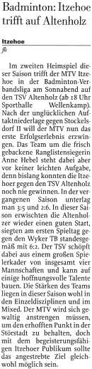 Die 1. Mannschaft in der Norddeutschen Rundschau vom 10.10.2003