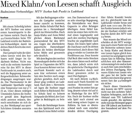 Die 1. Mannschaft in der Norddeutschen Rundschau vom 23.10.2003 |