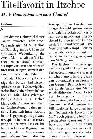 Die 1. Mannschaft in der Norddeutschen Rundschau vom 24.10.2003 |