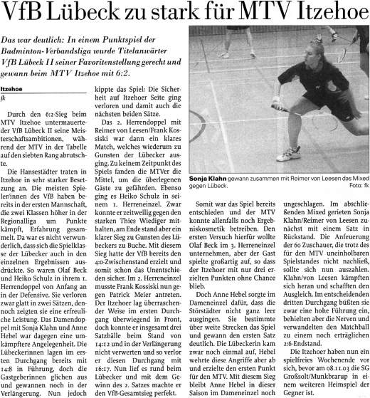 Die 1. Mannschaft in der Norddeutschen Rundschau vom 30.10.2003 |