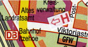 | Weiterfahrt per Bus in Itzehoe (ab Haltestelle Bahnhof / Viktoriastraße), Fahrzeit: 5 Minuten |